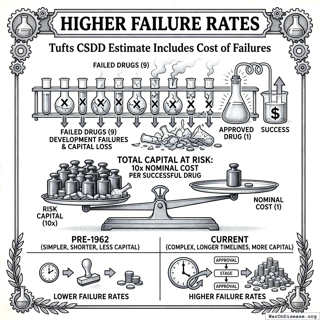 - Pre-1962 failure rates were lower. Simpler approval, shorter timelines, less money on fire.