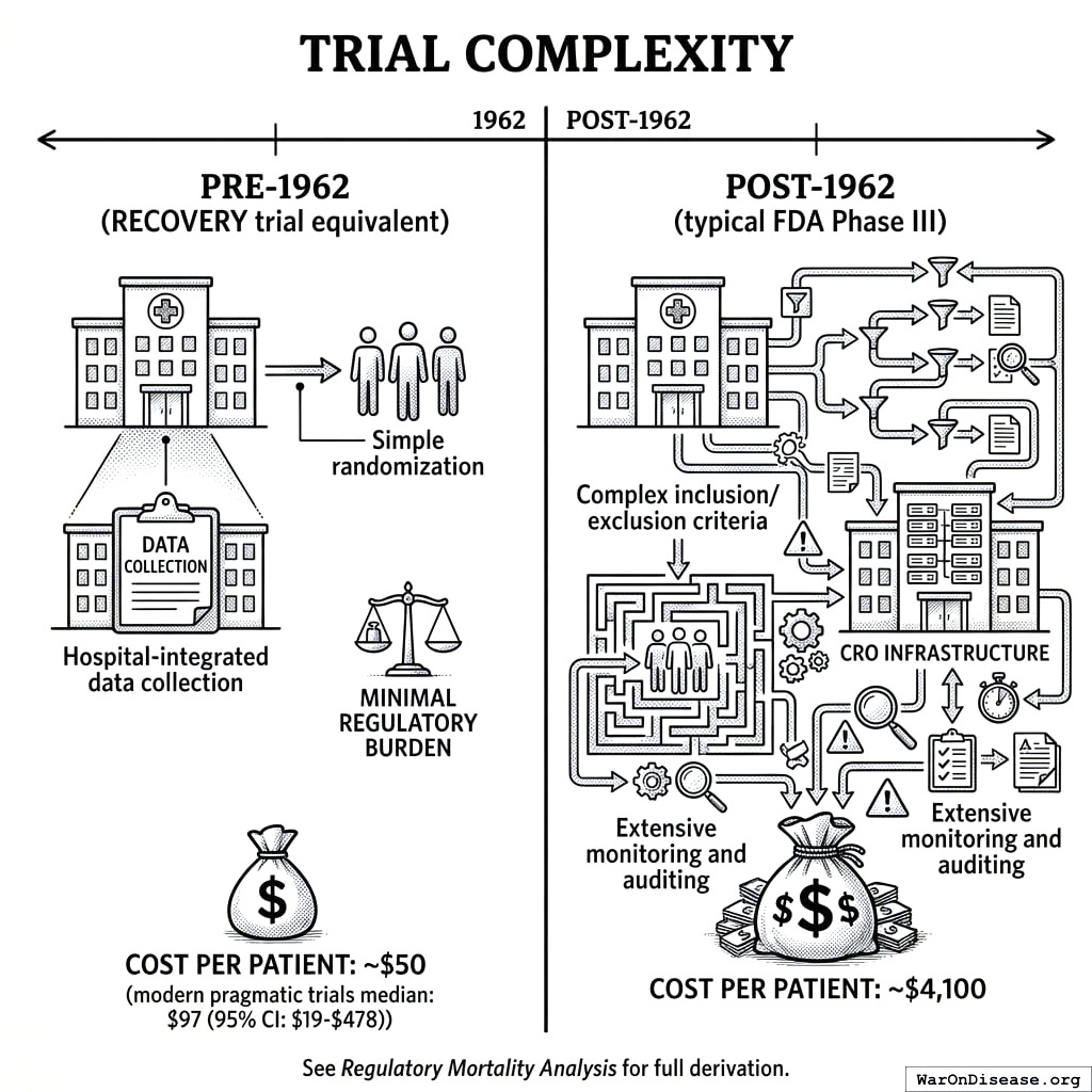 - Cost per patient: ~$50 (modern pragmatic trials median: $9779)