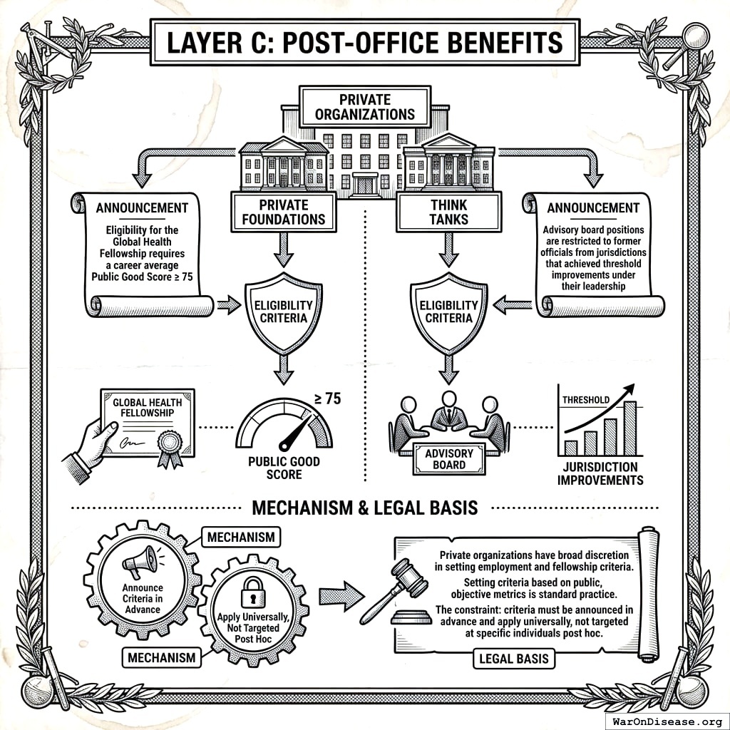 - Tier 1 (\(\theta_i^C \geq 75\)): Eligibility for clean energy foundation boards, climate advisory positions, green bank directorships