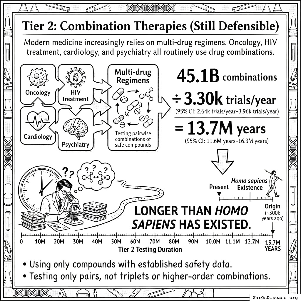 Testing every two-drug combination would take millions of years. You have about 70 years if you’re lucky. The math is not in your favor.