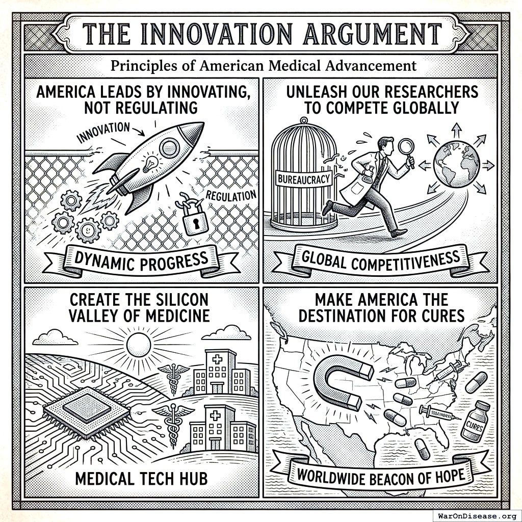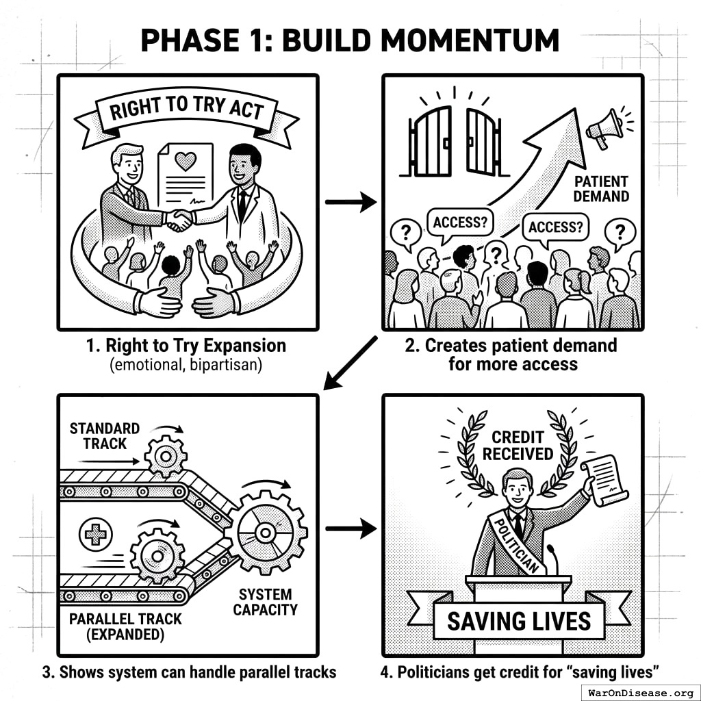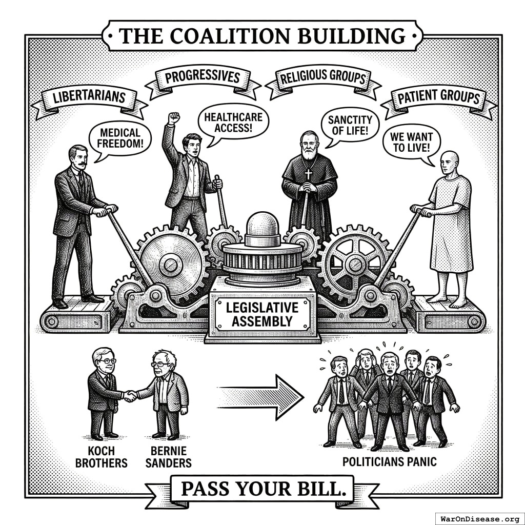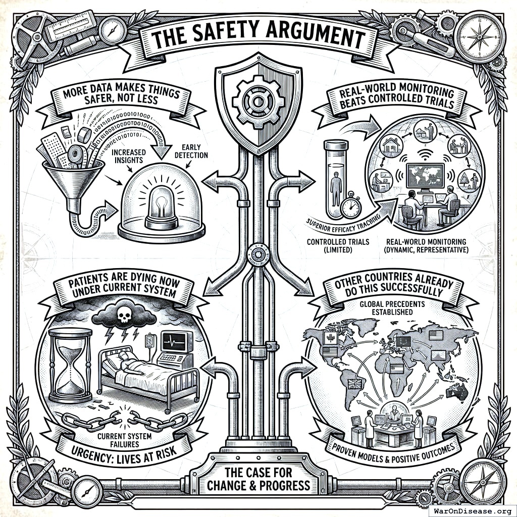 This act creates your decentralized FDA141,142. It builds a legal pathway for treatments to operate outside the FDA’s 17-year death march. Patients get choices. Researchers get freedom. People stop dying while waiting for approval.