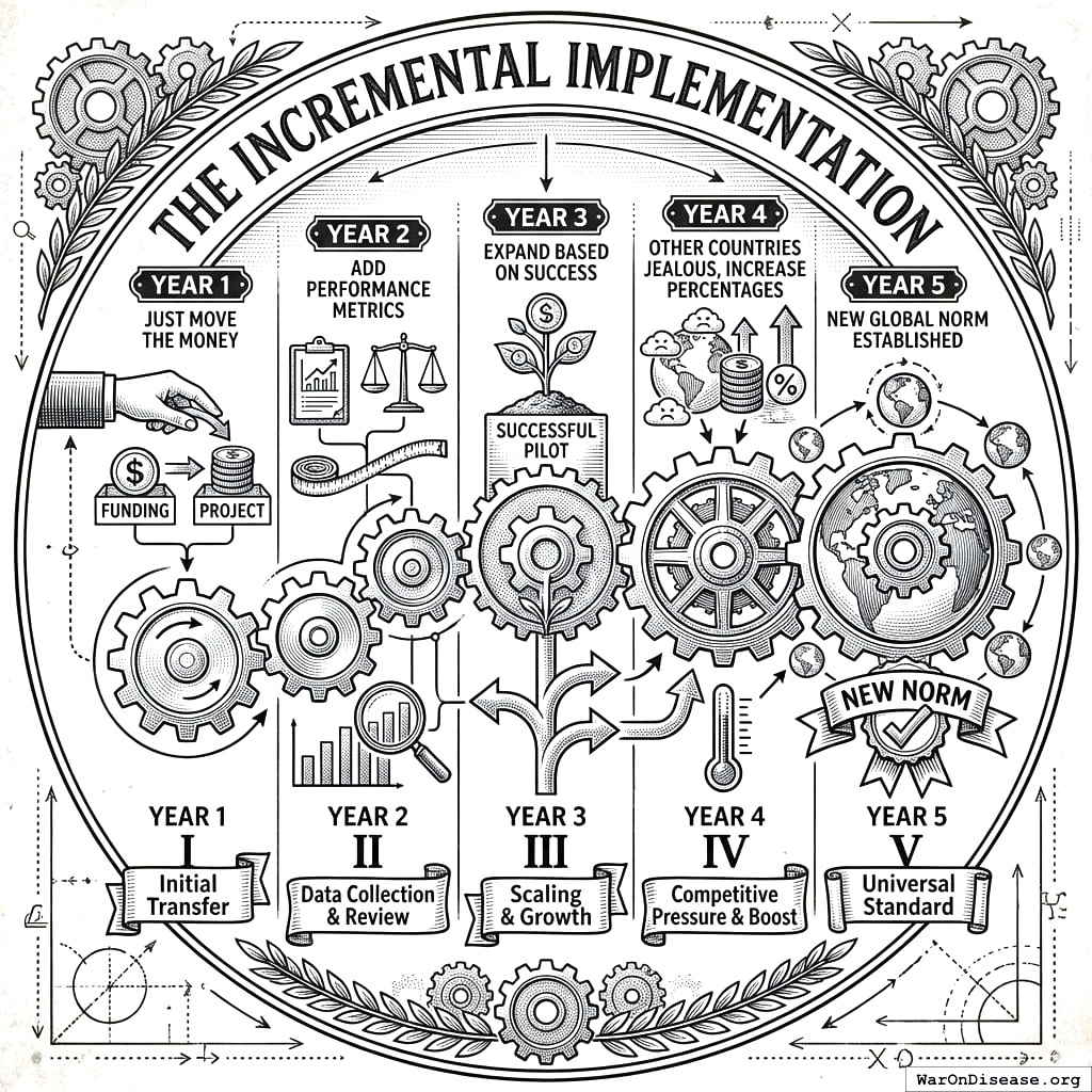 - Ratchet Clause: The 1% funding can only increase, never decrease. It automatically scales if other nations increase their commitment. Public referendum can expand it further.