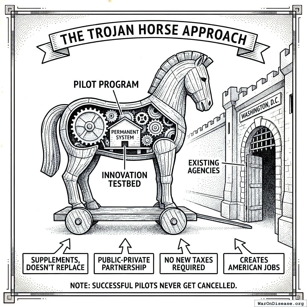 We designed each bill to pass because it gives politicians what they crave: money, votes, and the ability to claim they did something. This is your blueprint for five bills that transform healthcare forever.